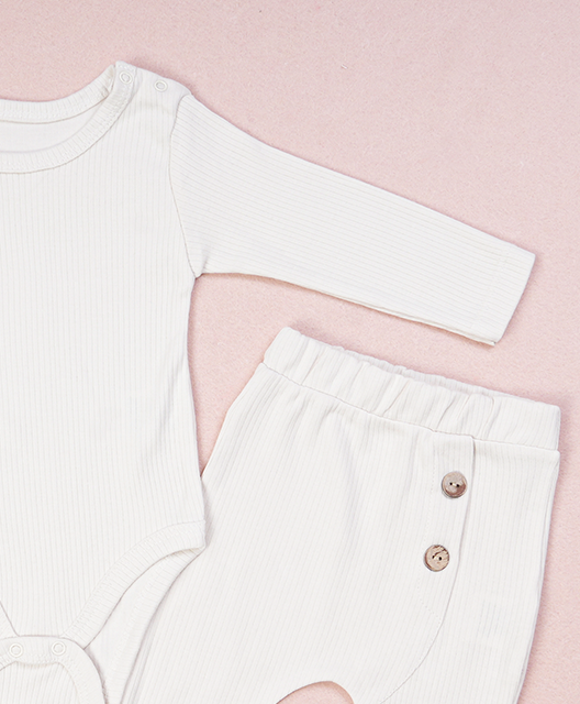 100% Cotton Baby Bodysuit & Pants Set Ribbed Cream