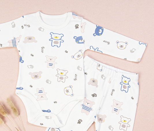 100% Cotton Baby Bodysuit & Pants Set Ribbed Bear