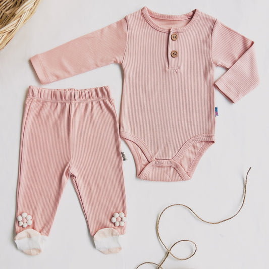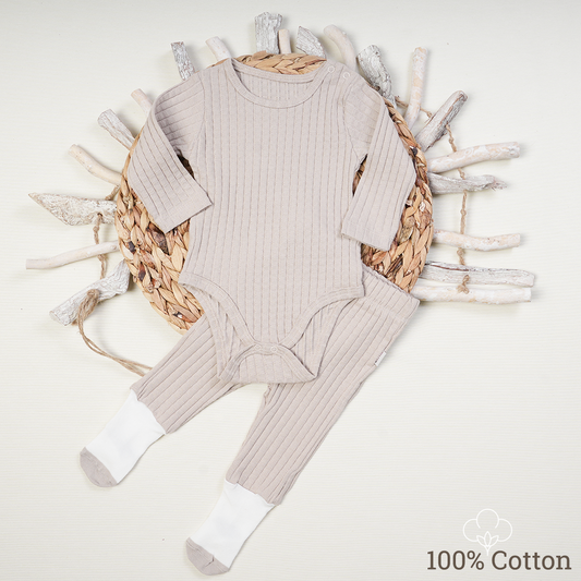 100% Cotton Baby Bodysuit & Pants Set Ribbed Beige