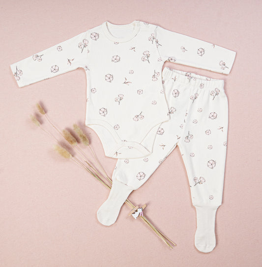 100% Cotton Baby Bodysuit & Pants Set Plant & Bloom