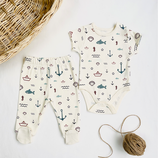 100% Cotton Nautical Baby Bodysuit & Pants Set