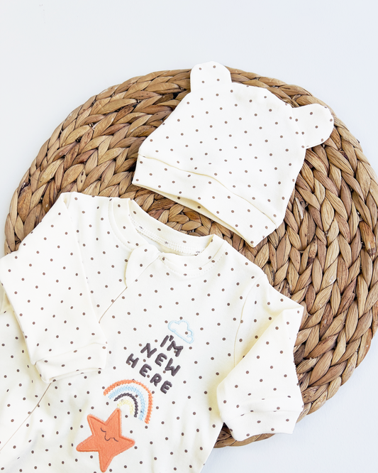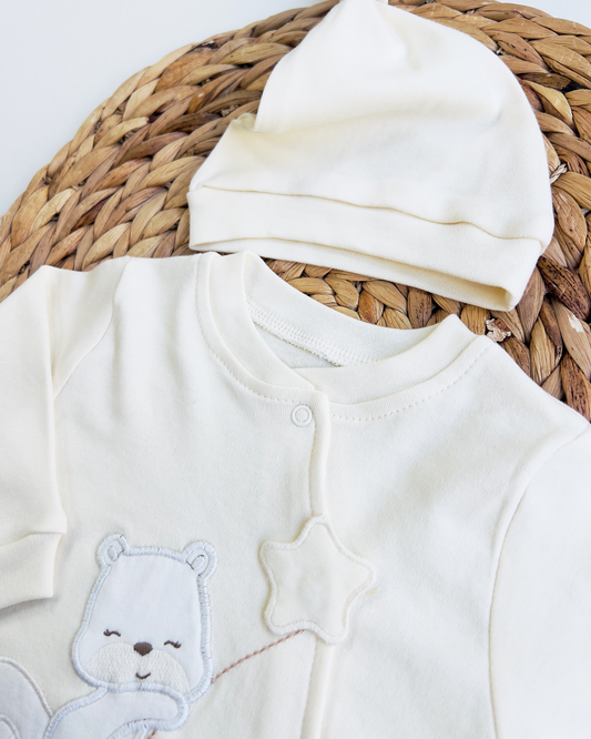 Baby Knit Cotton Jumpsuit with Beanie 0-12months