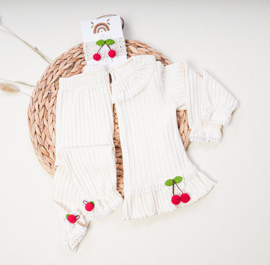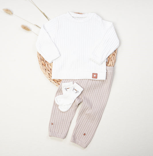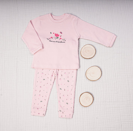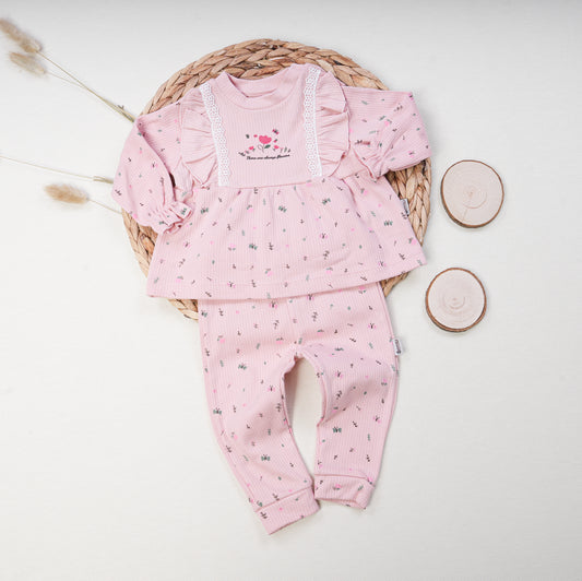 Ribbed Cotton Baby Girl Tunic Set - Flowers