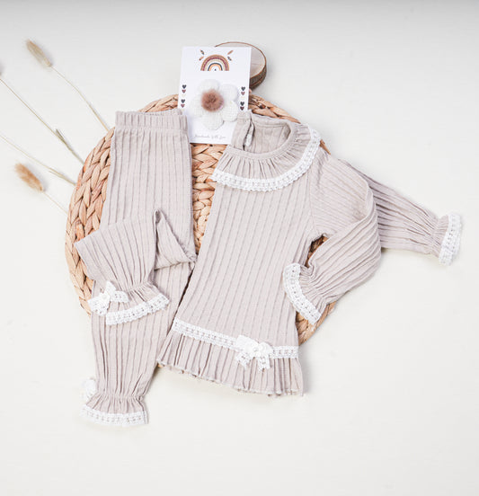 Ribbed Cotton Baby Girls Set Bows