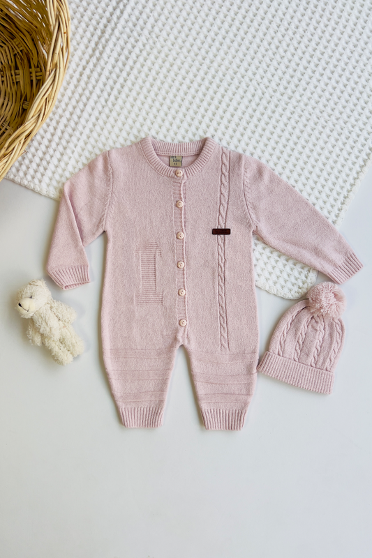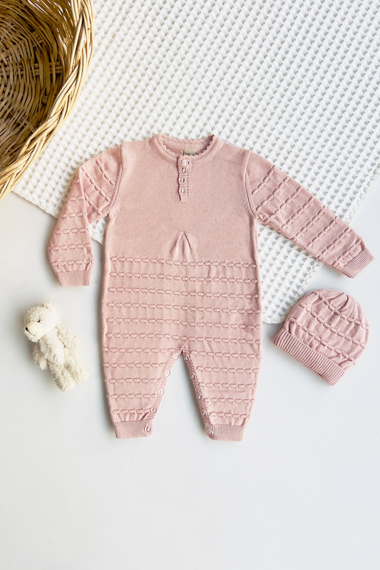 Baby Knit Cotton Jumpsuit with Beanie 0-12months
