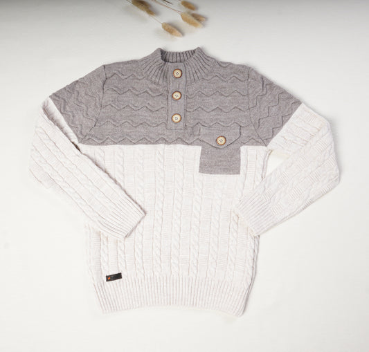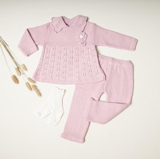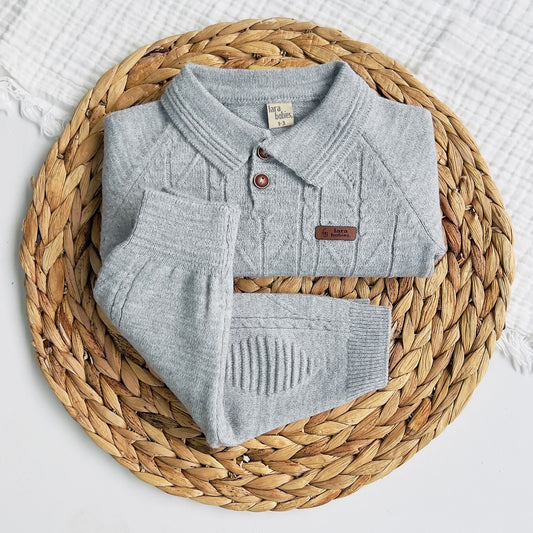 2-piece Baby Knit Set Buttoned Outfit Natural Wool