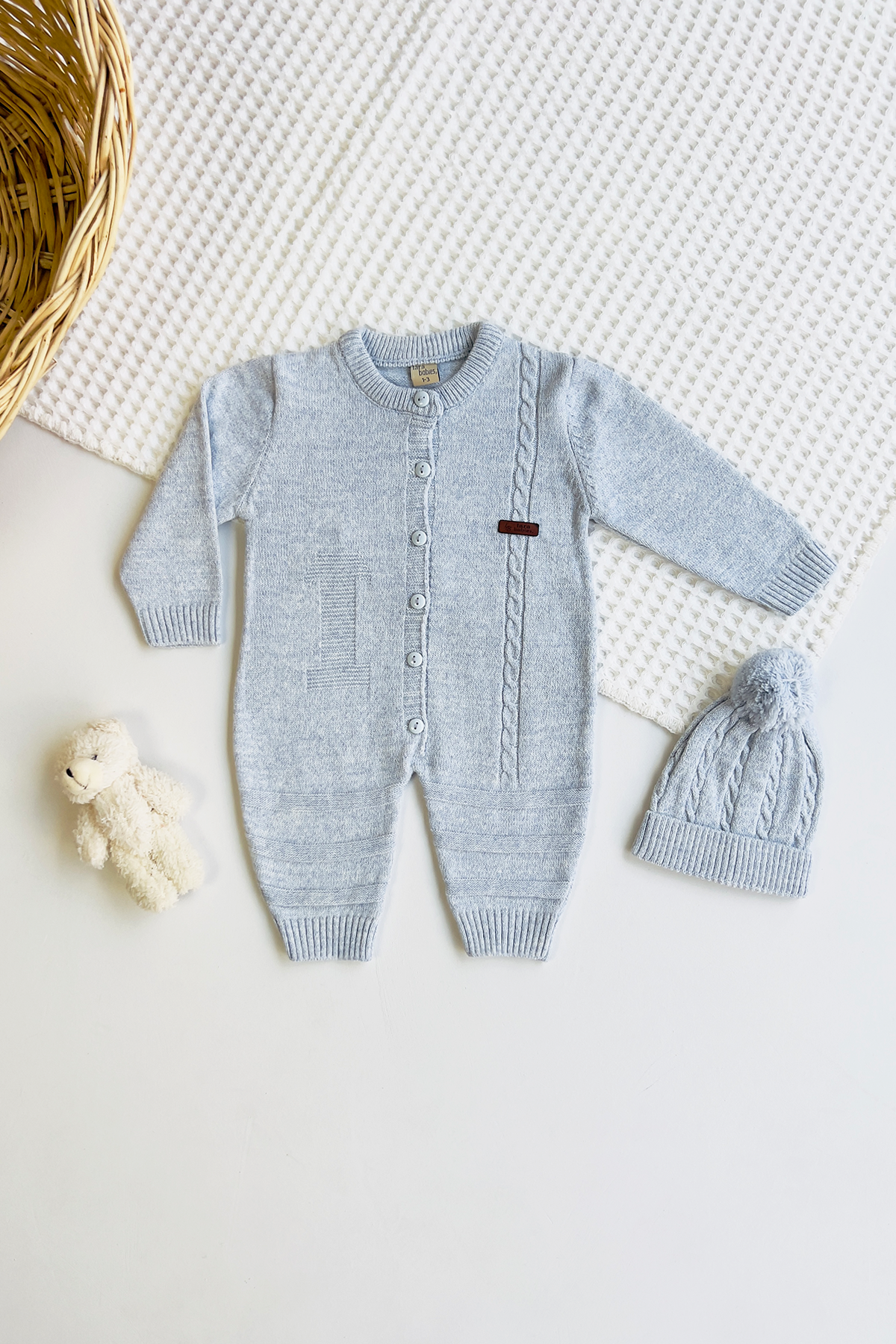 Baby Soft Knit Button Down Jumpsuit & Beanie